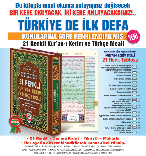 Bilgisayar Hatlı 21 Renkli Türkçe Mealli Kur'ân-ı Kerim |